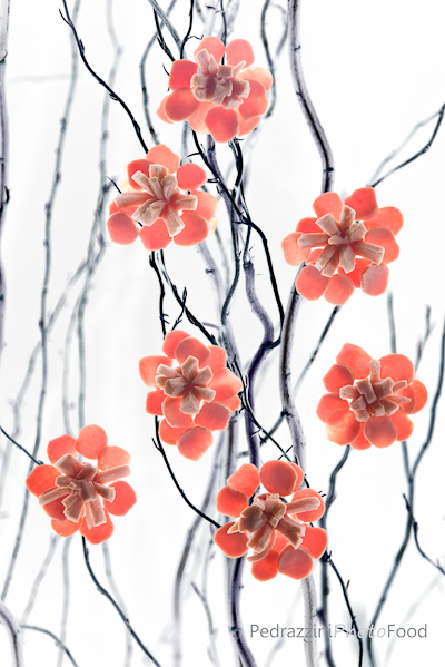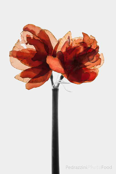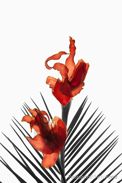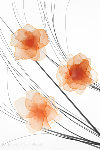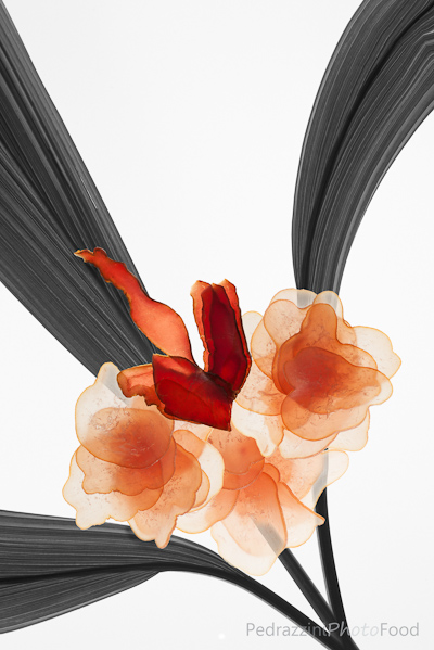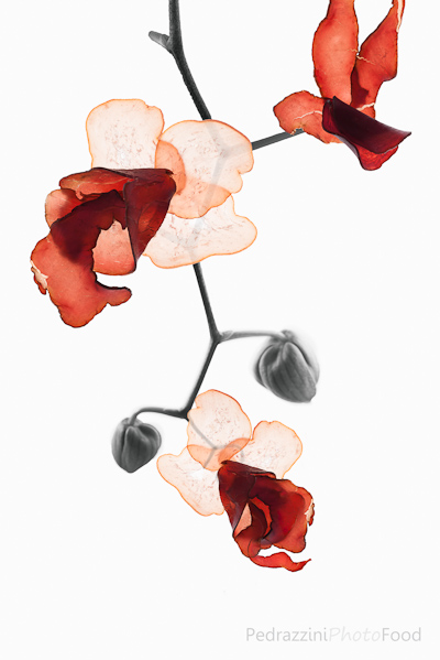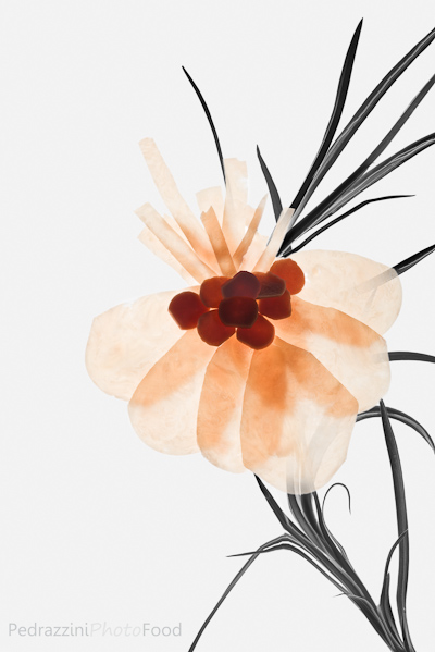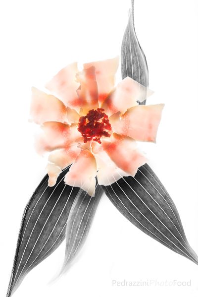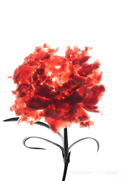 This is a series of photographs where I used different materials derived from. animals to recreate flowers. I have used raw and processed meat for the red flowers and lard for the white flowers. Why combining meat as flowers?? In some ways they are aesthetically speaking completely the opposite. Meat is bloody and crude - Flowers are fragile and beautiful. But they have a lot of similarities on another level. Meat derives from a living animal and to a lot of people it is the most nourishing of foods. The flower is also a living thing and some can also be eaten. Meat like no other food symbolizes life, decay and death at the same time. This is also true for the flower which one level stands For perfection, beauty and vitality. But within a short time the flower transforms from a beautiful, living thing to a withering, wilted and finally dead thing. The series of photomontages shows us meat as a material almost not recognizable at first sight as it has been transformed into a flower. The same can be said about a lot of meat found in supermarkets which has been processed, and shaped into many different forms to camouflage and disguise its animal origins. Scientists are researching into going one step further. They are artificially growing meat in the laboratory.